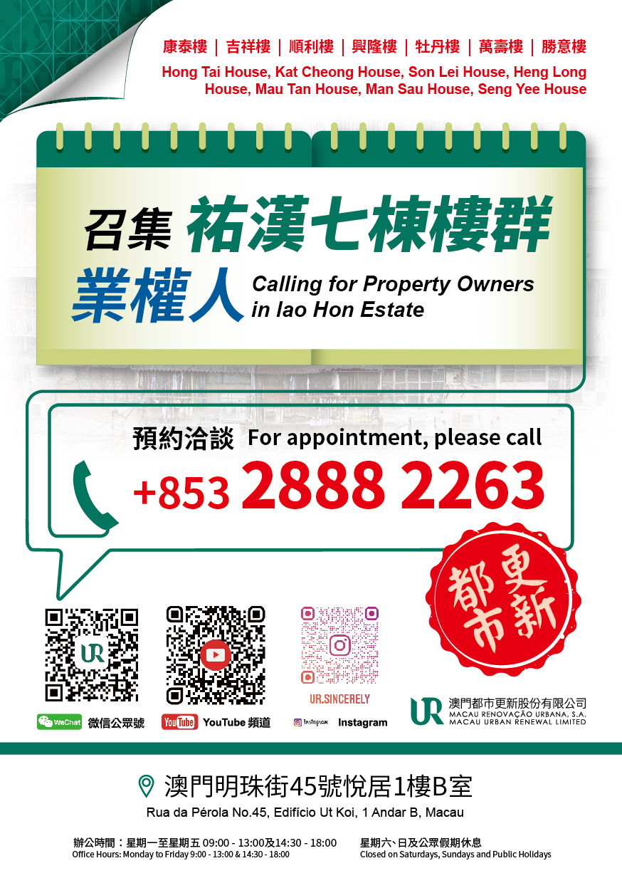 「祐漢七棟樓群」片區規劃已初步完成,都更公司呼籲祐漢七棟樓群業主致電約洽重建。